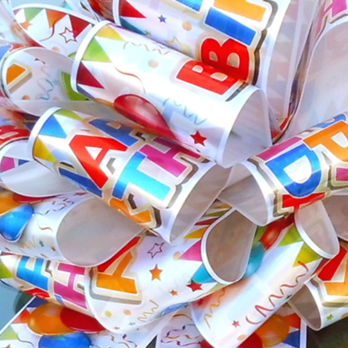 The Big Happy Birthday car bow is 42cm across and includes printed tails to drape across the car. The red bow pack also includes 6m of white ribbon to wrap the vehicle. When presenting a new car to family, friends or customers, create a WOW with this Happy Birthday Giant Car Bow. The Happy Birthday bow is made of a showerproof Polypropylene ribbon. The big Happy Birthday car bow may be reused if stored dry and carefully.